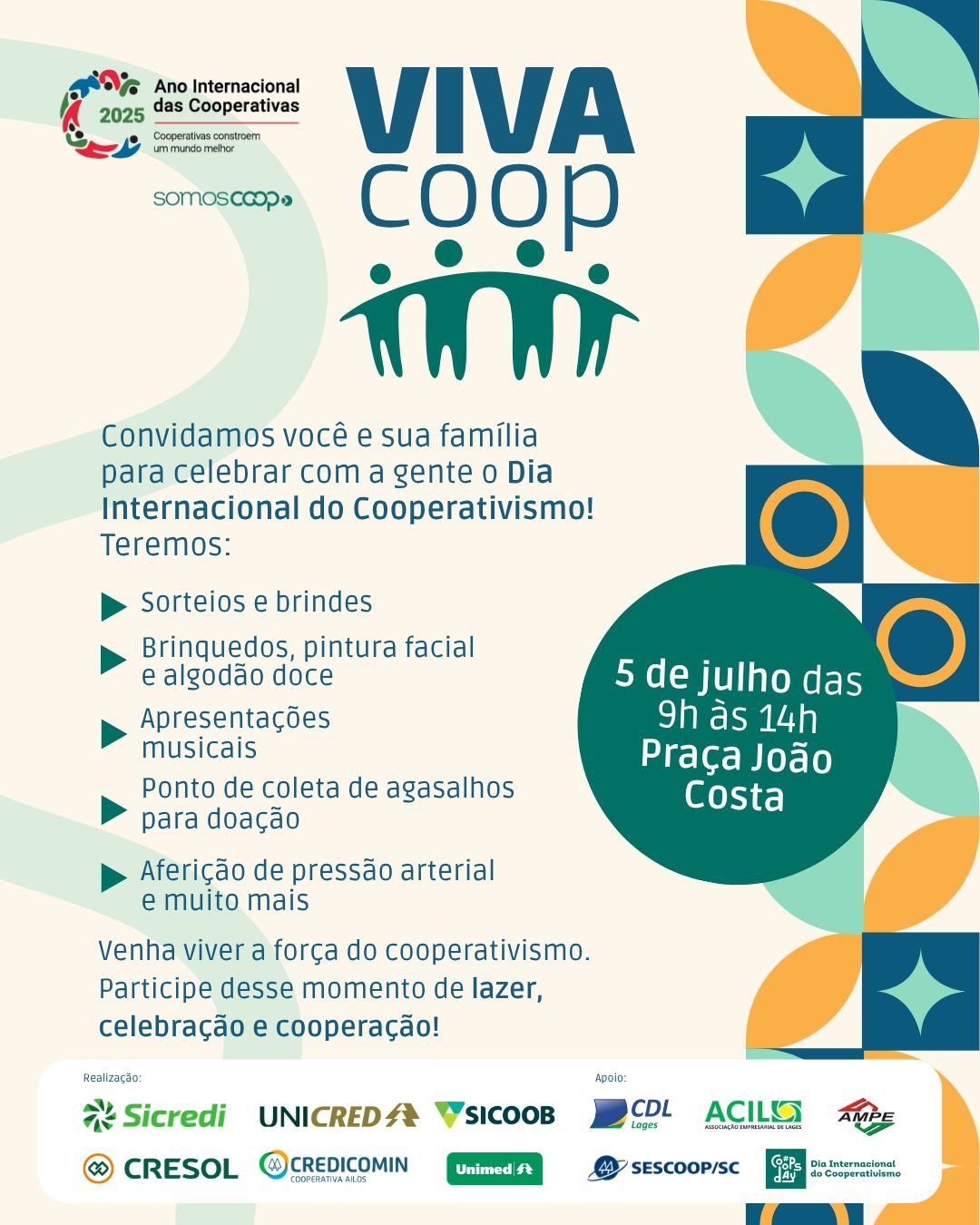 No dia 5 de julho, das 9h às 14h, a Praça João Costa será palco do evento Viva Coop – uma celebração gratuita e aberta a toda a comunidade!